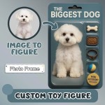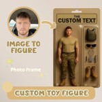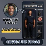 El diseño imita el estilo nostálgico de los empaques de juguetes e incluye una placa con nombre y texto personalizado opcional. Ya sea un regalo para el Día del Padre, un regalo de jubilación, un regalo de cumpleaños o simplemente una sorpresa especial, este expositor personalizado añadirá un toque divertido y entrañable a cualquier habitación.**Características:** - Centro de mesa con marco de fotos en miniatura realista basado en una foto personalizada. - Opciones de nombre y accesorios personalizados. - Marco de caja de presentación de alta calidad. - Perfecto para un escritorio, una estantería o como regalo.El producto es un diseño plano impreso, no un producto 3D.