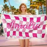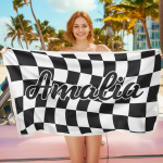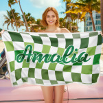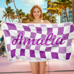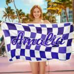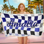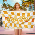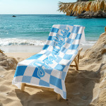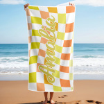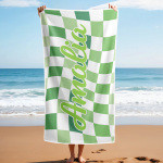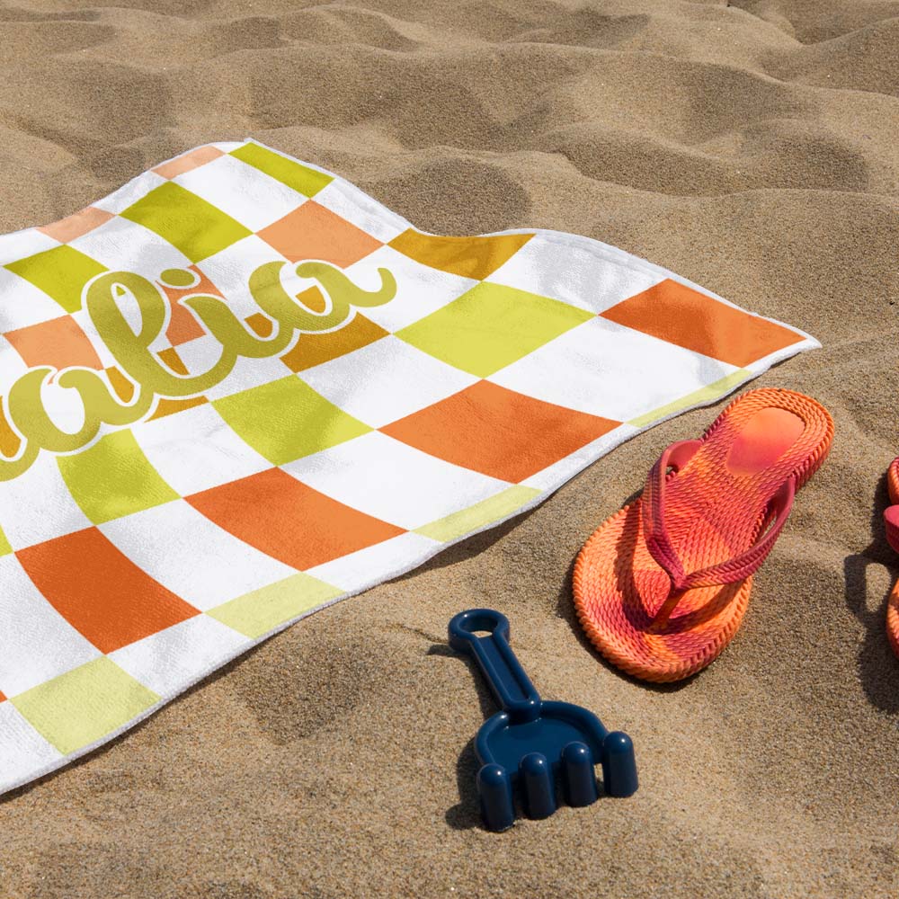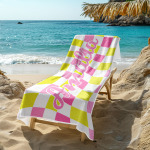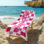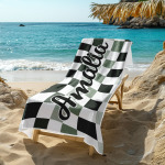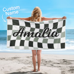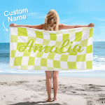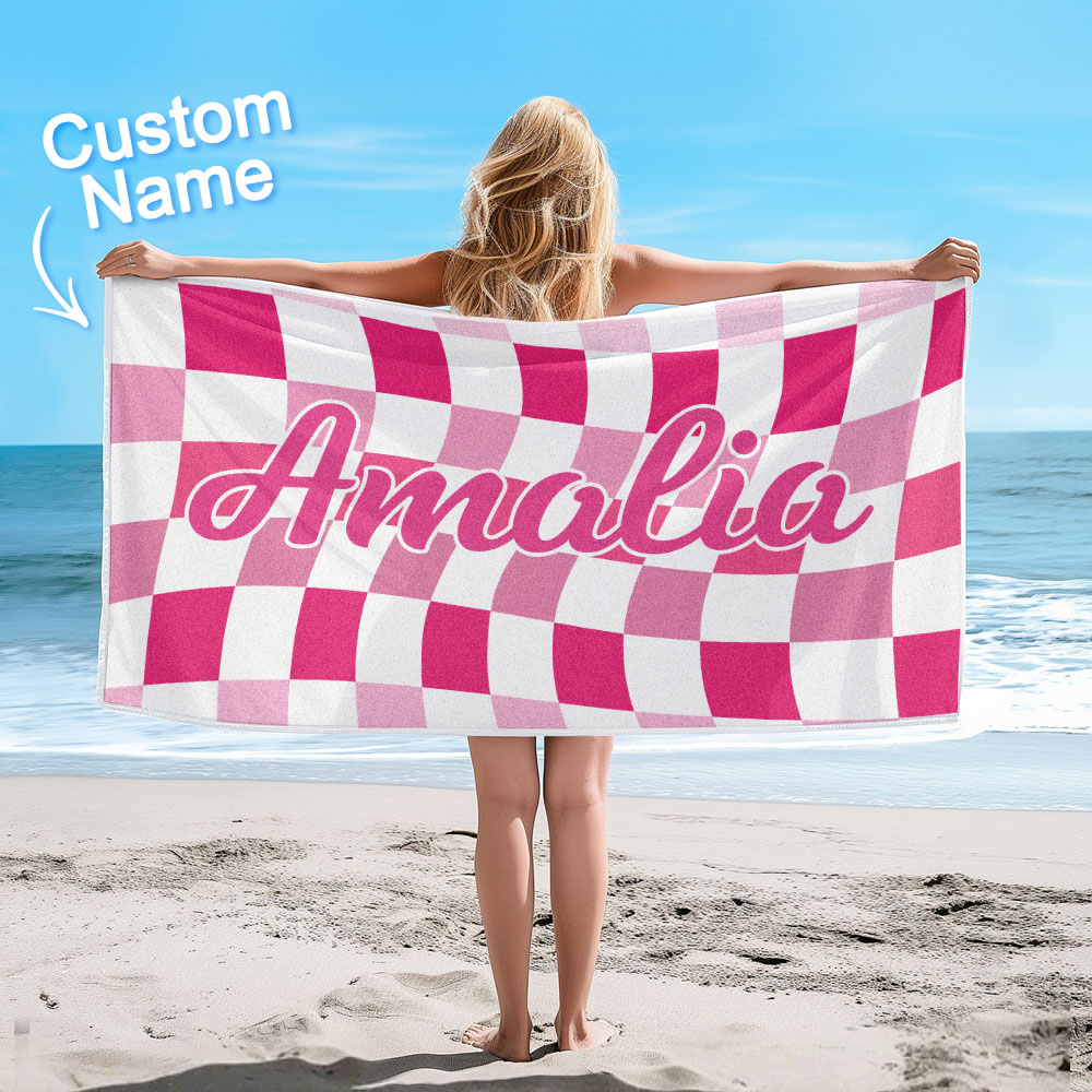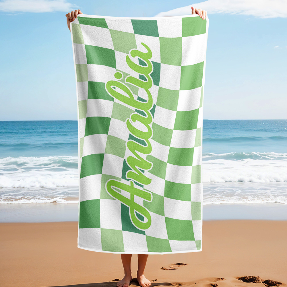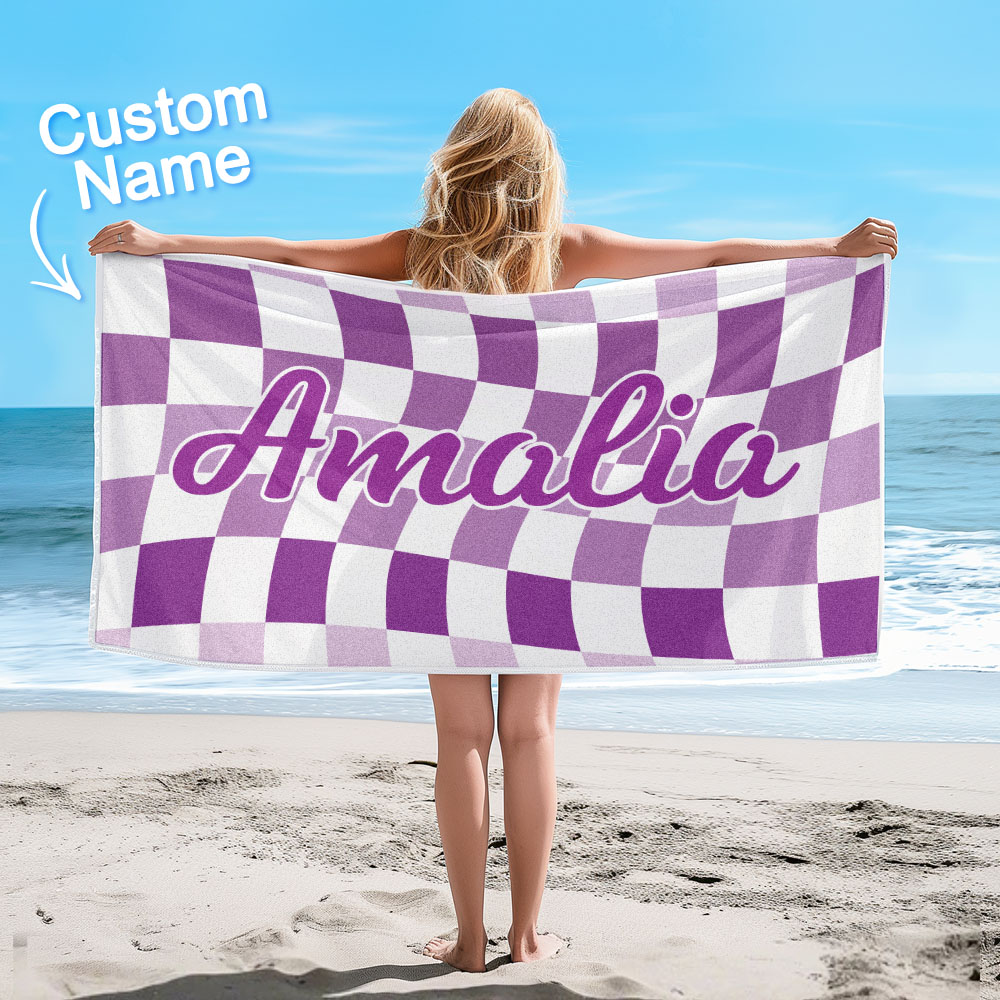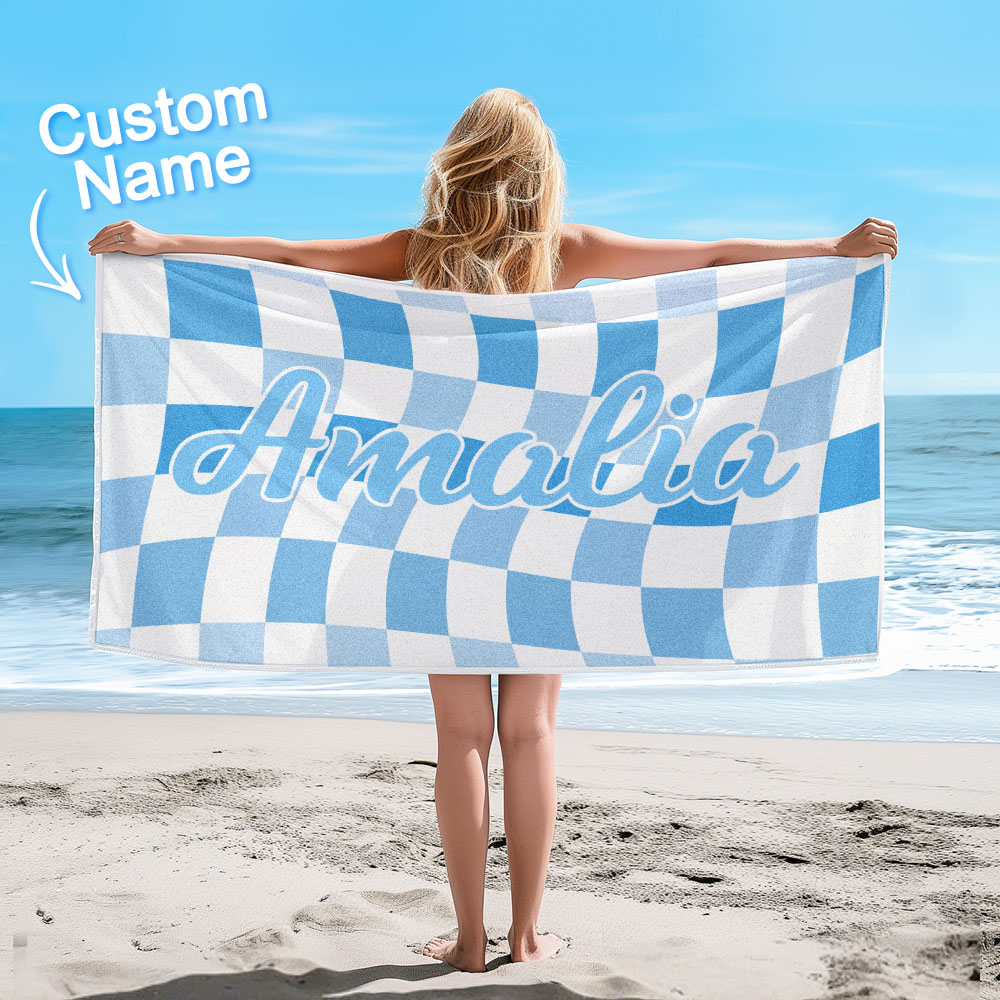 Toalla De Playa Personalizada Con Nombre Personalizado, Toalla De Baño A Cuadros, Regalo De Vacaciones De Verano