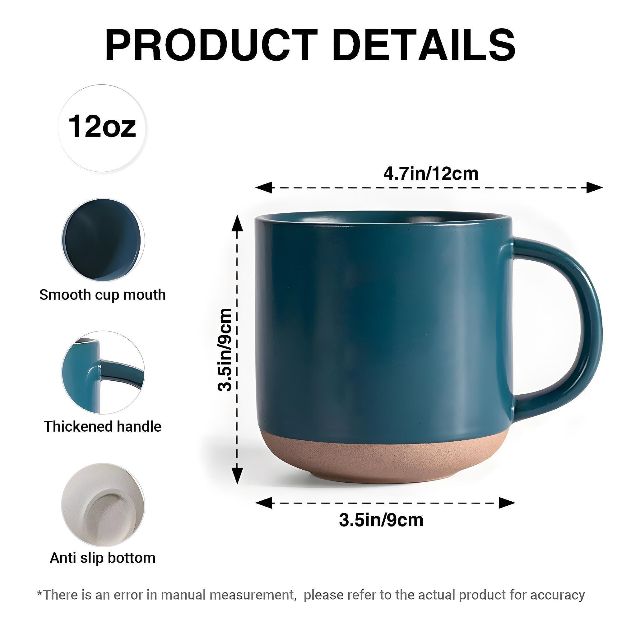 • Capacidad ideal: Con una capacidad de 355 ml (12 onzas), esta taza de cerámica cuenta con un asa reforzada y una base antideslizante, lo que la hace perfecta para el uso diario.