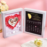 Cada caja de sombras presenta un exquisito ramo de flores de papel hechas a mano, arregladas con delicados detalles, acompañadas de una escultura de la fase lunar real de la fecha elegida, bellamente representada. Debajo, un sutil calendario de aniversario marca su viaje juntos. Elige una canción significativa y la integraremos con un reproductor de música de un solo toque: deja que la melodía dé vida a tus recuerdos con solo presionar un botón.
