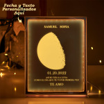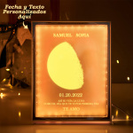 Marco de fotos con luz de espejo y fases lunares personalizado. Cuando la luz está apagada, se convierte en un espejo, y cuando está encendida, aparece el patrón. Regala a alguien querido. Verá tu sorpresa escondida al encender la luz. Esta lámpara puede usarse como espejo para uso diario o como adorno para decorar tu hogar. Ideal para diversos regalos navideños, un regalo creativo perfecto. Aprende las fases lunares y nombres personalizados con nuestra lámpara personalizada con fases lunares y nombres. Introduce tu fecha de nacimiento para experimentar el ciclo lunar y descubrir cómo es vivir en la Luna. Con ocho fases distintas y texto personalizable, este marco es una adición educativa y única a la colección de cualquier entusiasta del espacio.