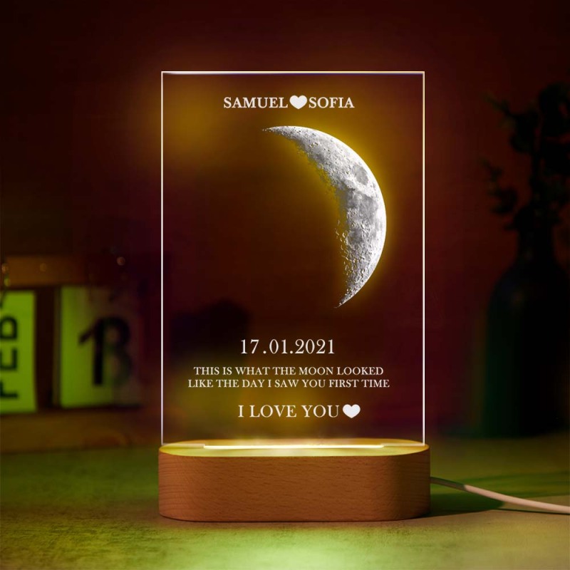 Lámpara De Fases Lunares Personalizada Con Texto Y Nombres Personalizados Y Luz De Siete Colores.