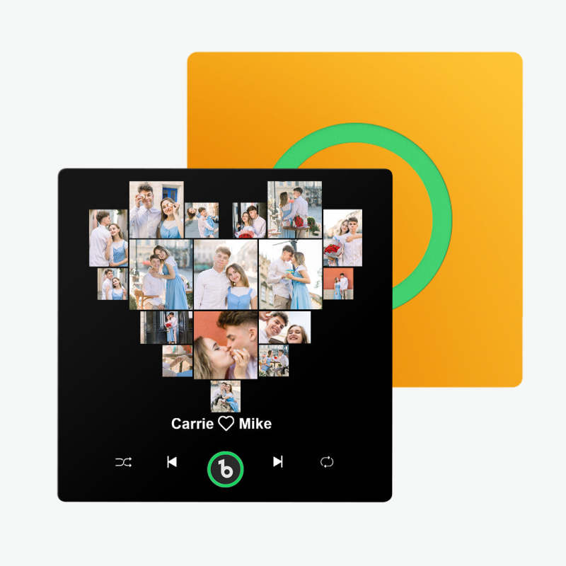 Imán de nevera personalizado con canciones románticas: el mejor regalo ¡Dale vida a tu música favorita con nuestro imán de nevera personalizado con forma de álbum! Este innovador imán es más que un simple elemento decorativo; es un dispositivo funcional e interactivo que te permite reproducir tus canciones favoritas directamente desde tu nevera. Ya sea que quieras escuchar una lista de reproducción relajante mientras cocinas o disfrutar de tu música favorita mientras tomas un refrigerio, este imán para el refrigerador lo hace posible.Información del producto:Material: AcrílicoTamaño: 10 cm x 10 cm x 1,2 cm