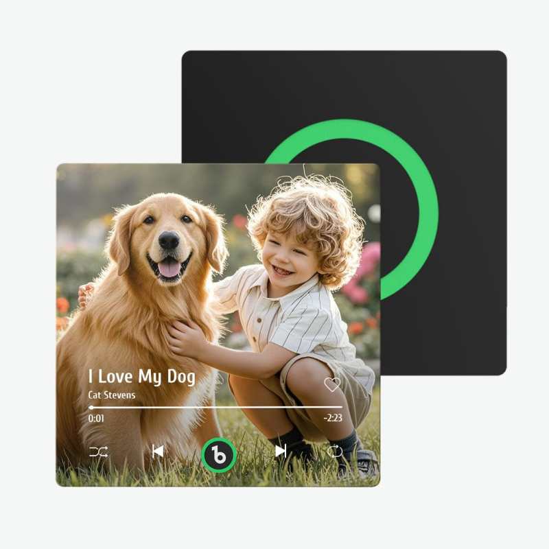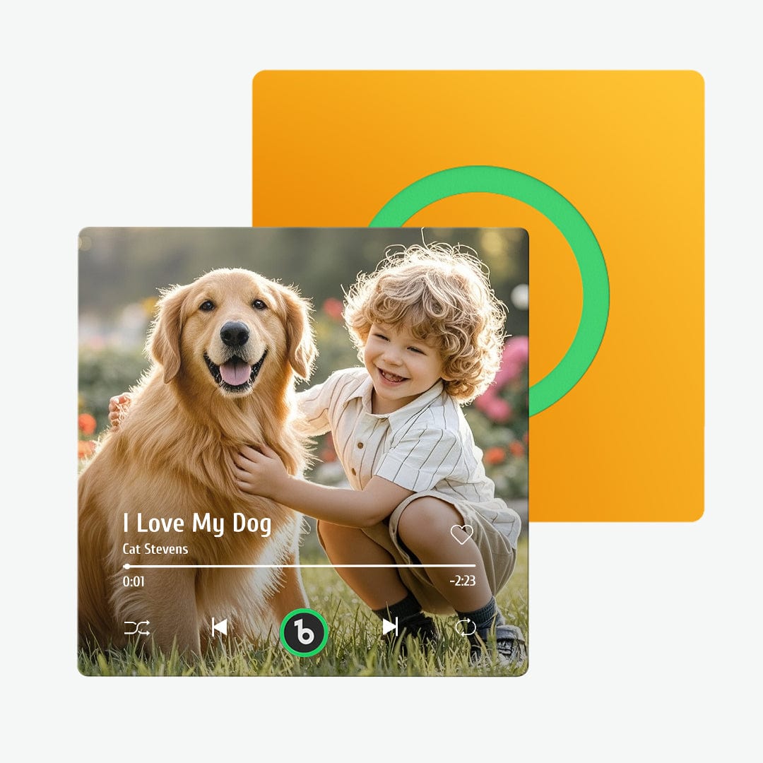 ¡Dale vida a tu música favorita con nuestro imán de nevera personalizado con forma de álbum! Este innovador imán es más que un simple elemento decorativo; es un dispositivo funcional e interactivo que te permite reproducir tus canciones favoritas directamente desde tu nevera. Ya sea que quieras escuchar una lista de reproducción relajante mientras cocinas o disfrutar de tu música favorita mientras tomas un refrigerio, este imán para el refrigerador lo hace posible.