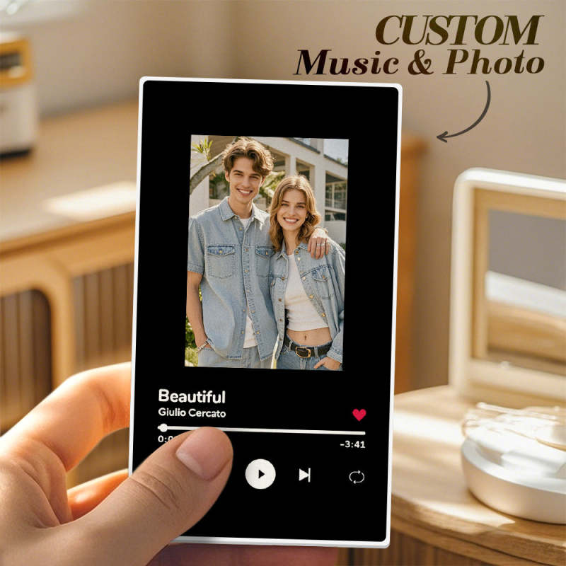 ¡Dale vida a tu música favorita con nuestro imán de nevera personalizado con forma de álbum! Este innovador imán es más que un simple elemento decorativo: es un dispositivo funcional e interactivo que te permite reproducir tus canciones favoritas directamente desde la nevera. Tanto si quieres escuchar una lista de reproducción relajante mientras cocinas como si prefieres disfrutar de tu música favorita mientras comes algo, este imán lo hace posible.