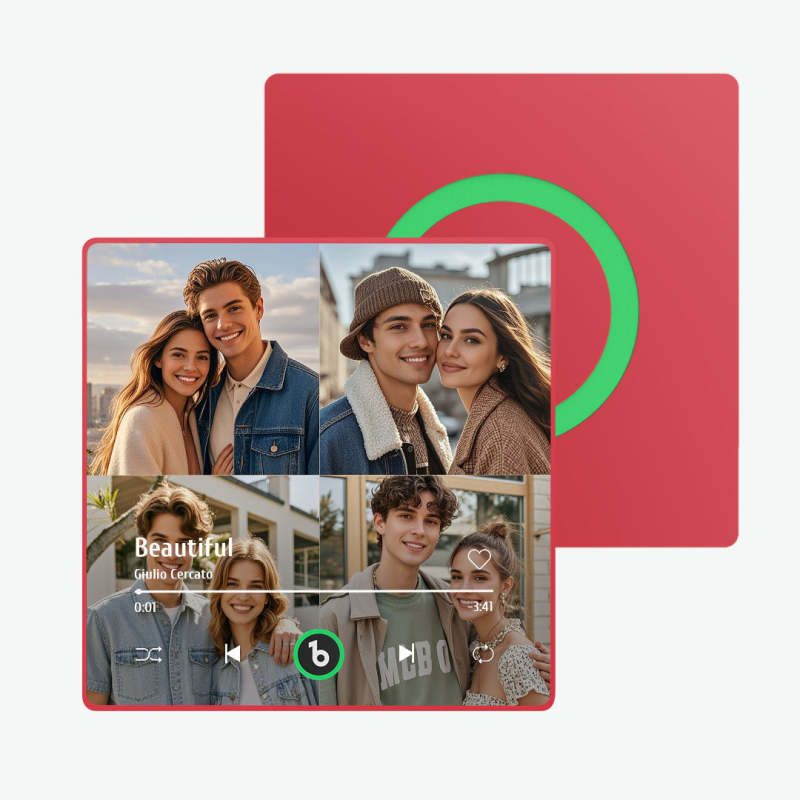 Seguro y ecológico: Fabricado con materiales de alta calidad, seguros y no tóxicos, lo que garantiza un uso prolongado y sin preocupaciones. Su diseño de bajo consumo energético también significa que no tendrá que preocuparse por los frecuentes cambios de batería.Este artículo requiere de 3 a 5 días hábiles para su producción.¿?Exclusividad: Al ser el único imán de nevera musical personalizado del mercado, este regalo es un testimonio único de su amor. Valor emocional: Cada canción personalizada transmite las historias y emociones que comparten, haciendo de este regalo algo cálido y significativo.Gran practicidad: No solo es un regalo de San Valentín, sino también una pequeña bendición en el día a día, que les recuerda constantemente el amor y el cariño que se tienen.