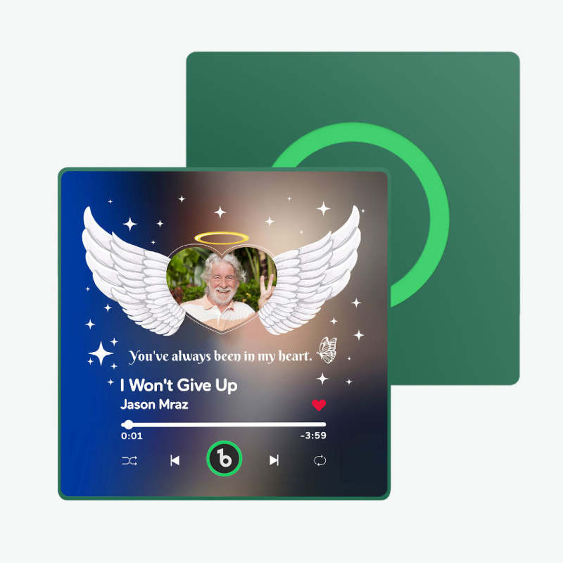 Seguro y ecológico: Fabricado con materiales de alta calidad, seguros y no tóxicos, lo que garantiza un uso prolongado y sin preocupaciones. El diseño de bajo consumo energético también significa que no tendrá que preocuparse por los frecuentes cambios de batería. Este artículo requiere de 3 a 5 días hábiles para su producción.Singularidad: Al ser el único imán de nevera musical personalizado del mercado, este regalo es un testimonio único de su amor.Valor emocional: Cada canción personalizada lleva consigo las historias y emociones que comparten, lo que hace que este regalo esté lleno de calidez y significado. significado.