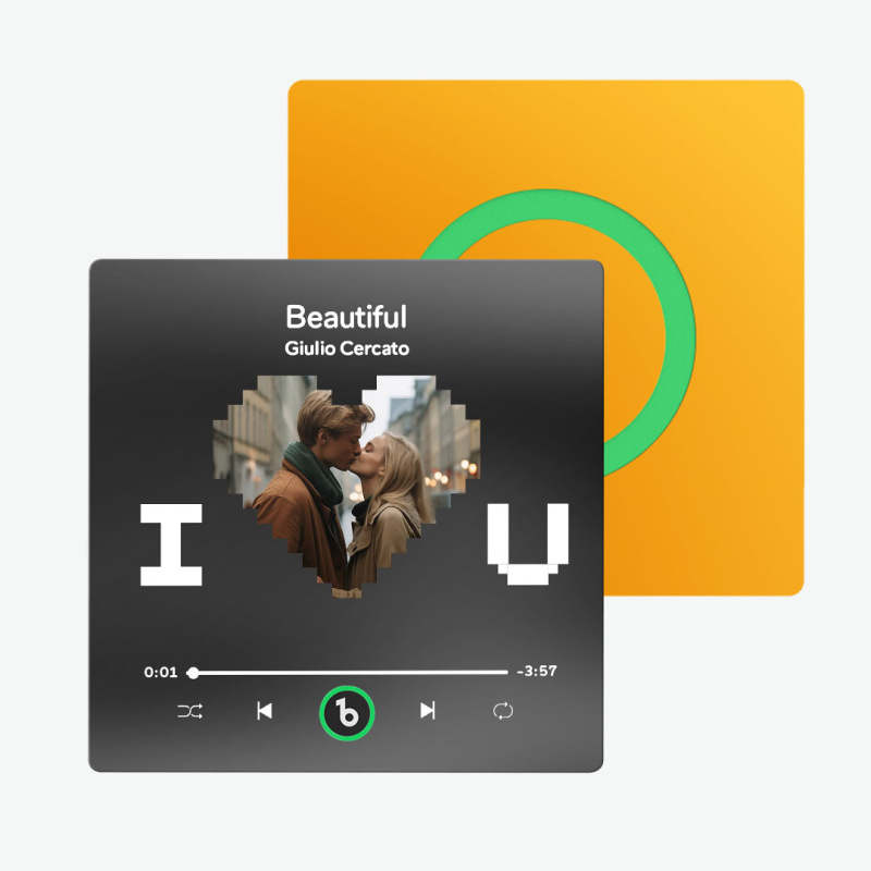 Imán de nevera personalizado con canciones románticas: el mejor regalo ¡Dale vida a tu música favorita con nuestro imán de nevera personalizado con forma de álbum! Este innovador imán es más que un simple elemento decorativo; es un dispositivo funcional e interactivo que te permite reproducir tus canciones favoritas directamente desde tu nevera. Ya sea que quieras escuchar una lista de reproducción relajante mientras cocinas o disfrutar de tu música favorita mientras tomas un refrigerio, este imán para el refrigerador lo hace posible.Información del producto:Material: AcrílicoTamaño: 10 cm x 10 cm x 1 cm