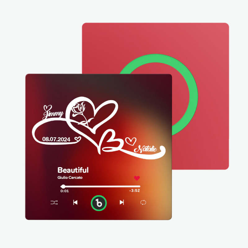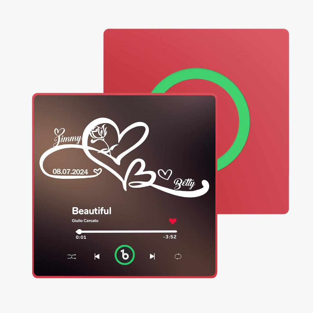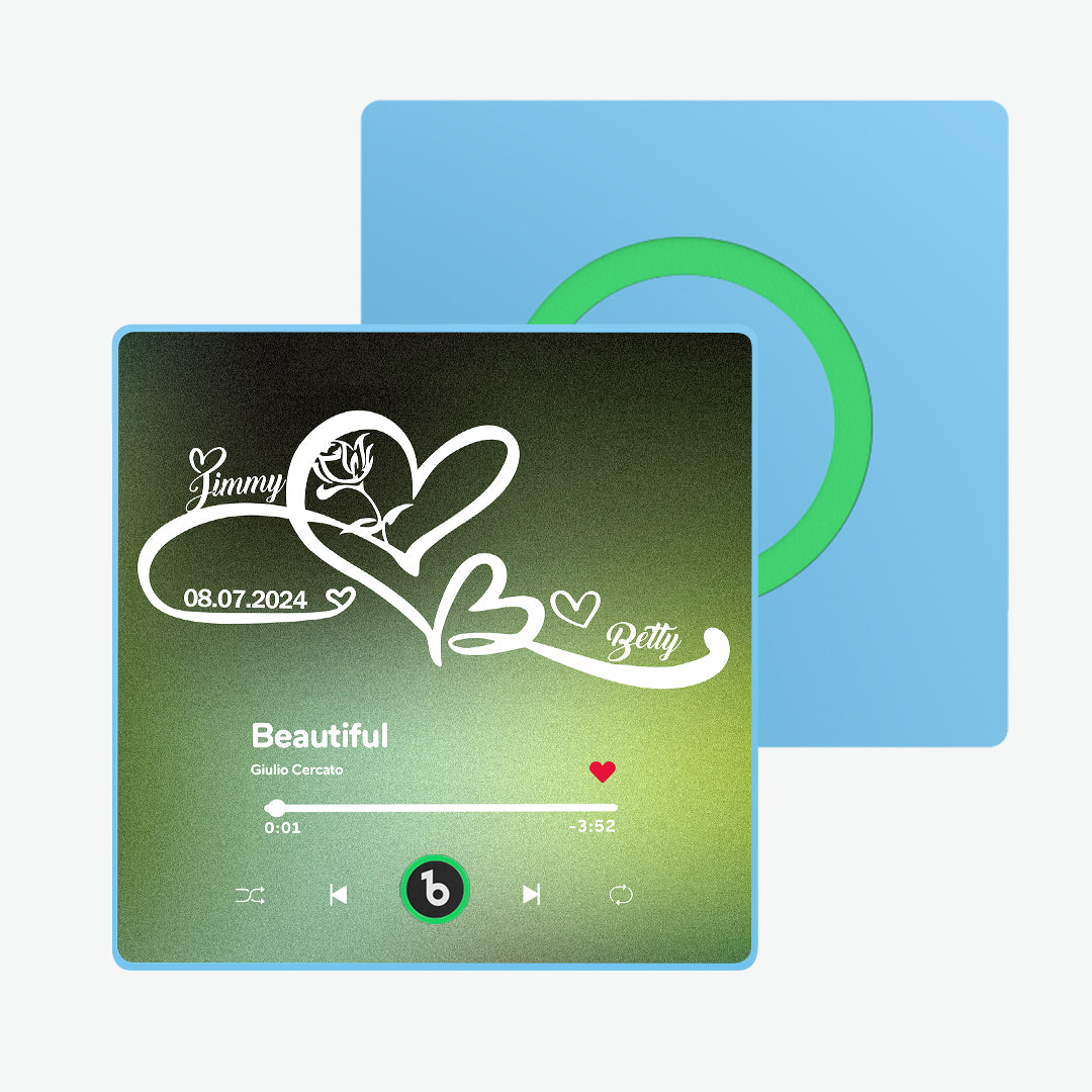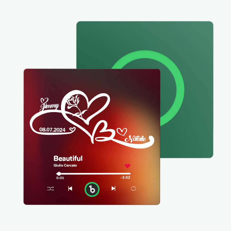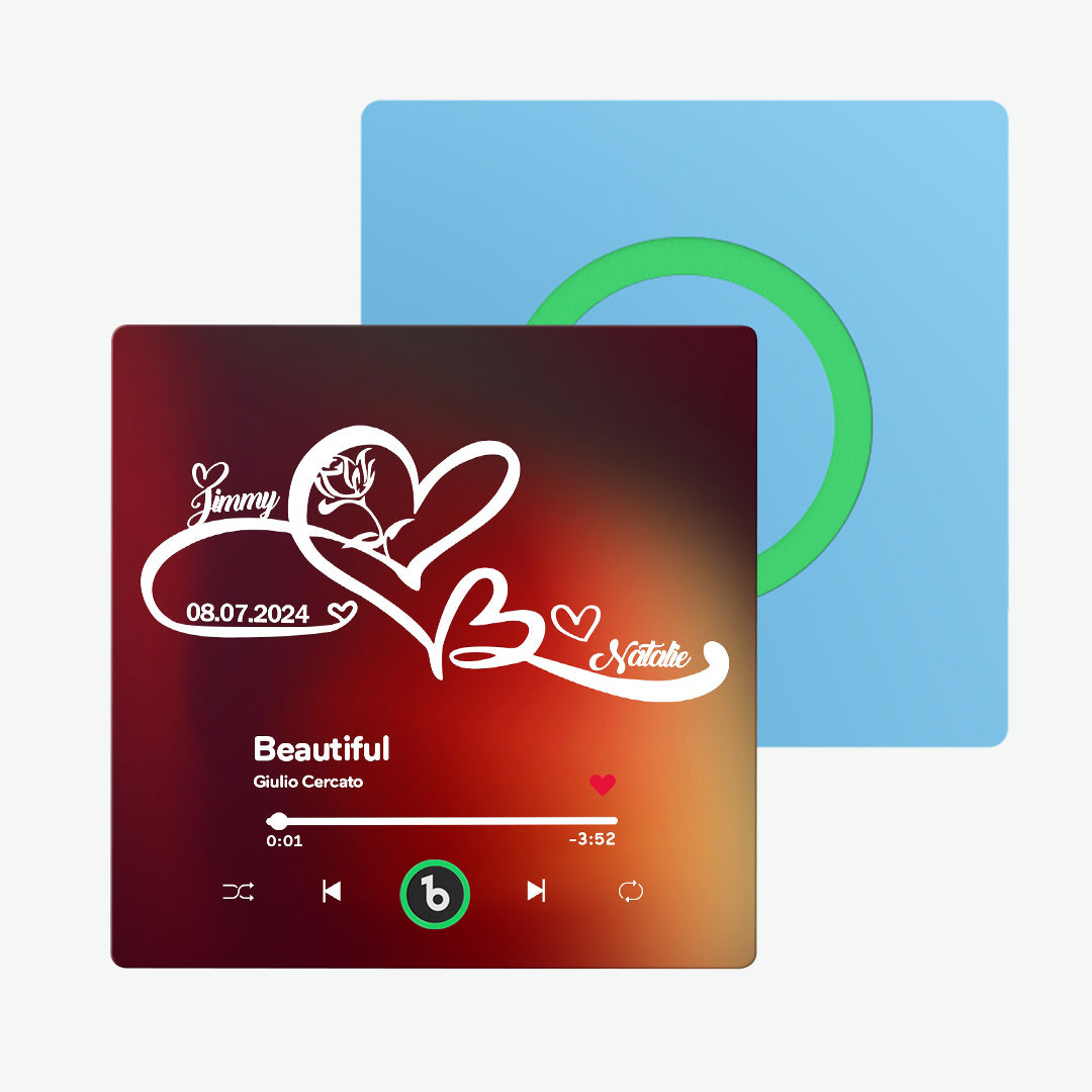 Música personalizada: Elige canciones románticas o tus melodías favoritas para un imán de nevera musical personalizado. Cada vez que el imán se active, estará acompañado por la música de tu amor. Si lo deseas, incluso puedes cambiar la música del imán por cualquier canción que elijas o una grabación de voz personal. Para obtener instrucciones detalladas, ponte en contacto con nuestro servicio de atención al cliente. Tenemos un tutorial dedicado listo para ti.