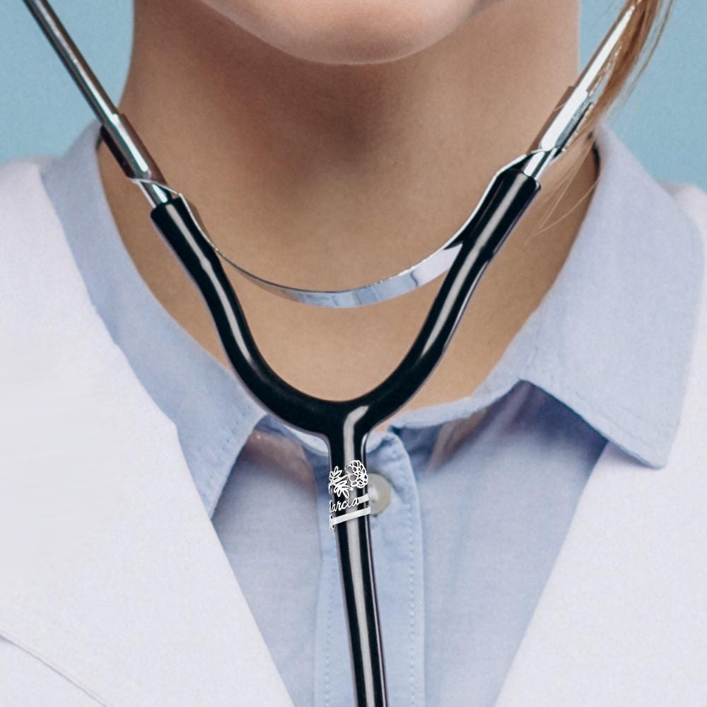 Esta placa de identificación personalizada para estetoscopio es un regalo ideal para cualquier enfermero o médico, incluyendo estudiantes de enfermería o personas que acaban de obtener su título de enfermero/a titulado/a. La placa tiene un círculo ajustable que permite deslizar el anillo y ajustarlo fácilmente.