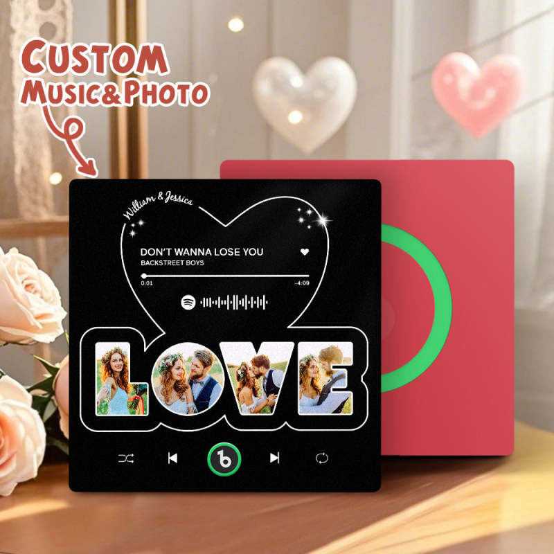 class='rich-text-paragraph' data-eleid='4'>¡Dale vida a tu música favorita con nuestro imán de nevera personalizado con forma de álbum! Este innovador imán es más que una pieza decorativa; es un dispositivo funcional e interactivo que te permite reproducir tus canciones favoritas directamente desde tu nevera. Ya sea que quieras escuchar una lista de reproducción relajante mientras cocinas o disfrutar de tu música favorita mientras tomas un refrigerio, este imán para el refrigerador lo hace posible.Material: AcrílicoTamaño: 10 cm x 10 cm x 1 cmDimensiones: 10 cm x 10 cm x 1 cmTiempo de carga: 30 minutosTiempo de carga: 30 minutosDuración de la batería: 4-6 horasCaracterísticas: Resistente al agua y duradero, sin necesidad de desmontar componentes para cambiar la música. Música personalizada: Elige canciones románticas o tus melodías favoritas para un imán de nevera musical personalizado. Cada vez que el imán se active, estará acompañado por la música de tu amor. Si lo deseas, incluso puedes cambiar la música del imán por cualquier canción que elijas o una grabación de voz personal. Para obtener instrucciones detalladas, ponte en contacto con nuestro servicio de atención al cliente. Tenemos un tutorial dedicado listo para ti.