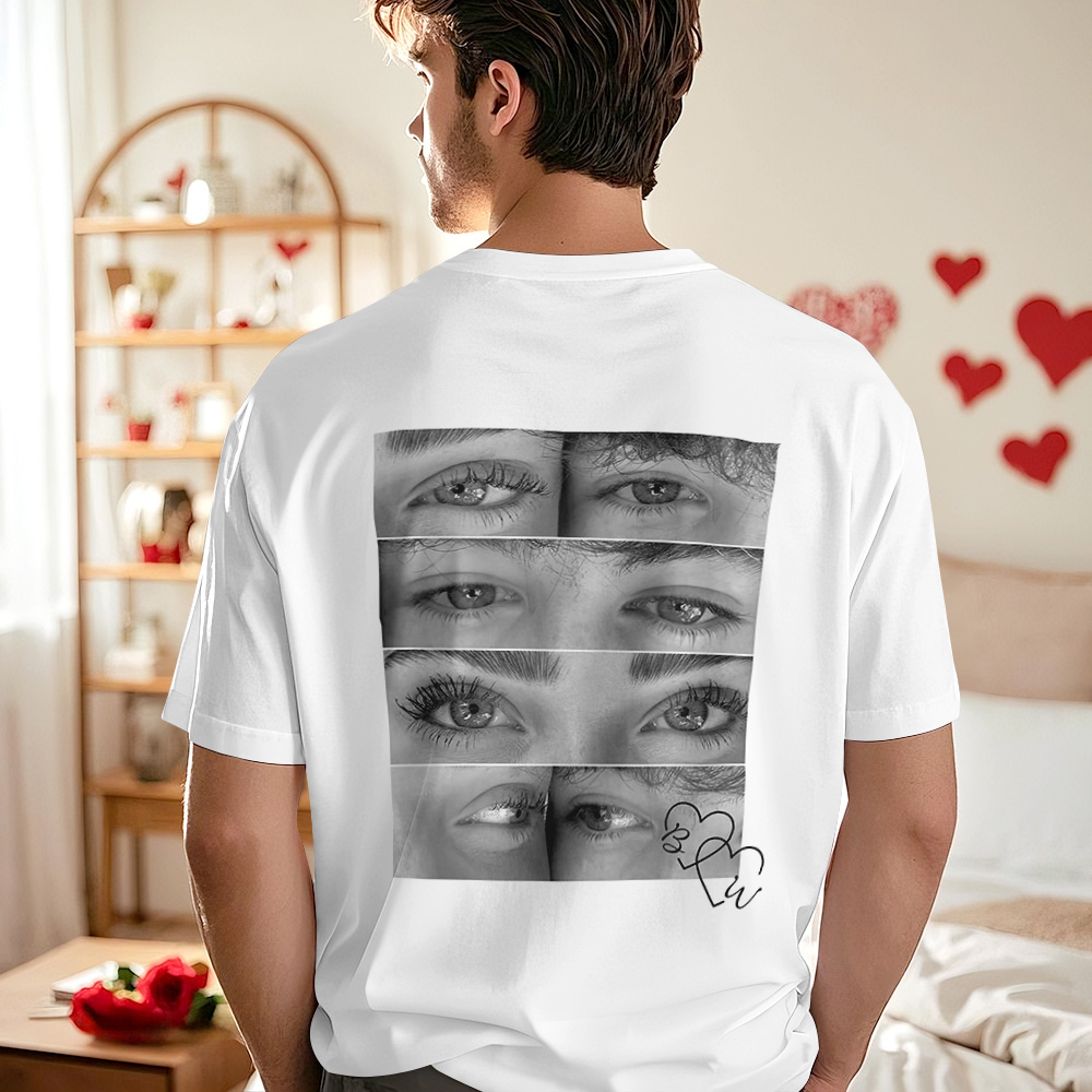 Tu amor, personalizado: Muestra una foto cautivadora de los ojos de tu novia, haciendo que esta camiseta sea verdaderamente única y emotiva. Es un recordatorio constante de su presencia.