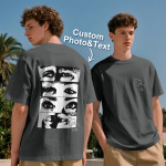Celebrad juntos vuestro viaje único con nuestra Camiseta personalizada con foto de los ojos de vuestra novia 'Love on Tour' con texto. Esta camiseta personalizada es la manera perfecta de llevar vuestra historia de amor a donde quiera que vayas, capturando la esencia de vuestro vínculo especial.