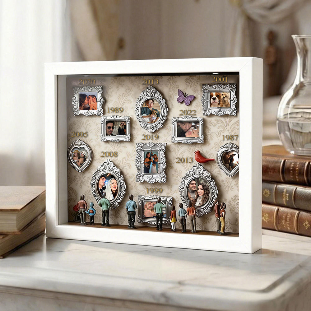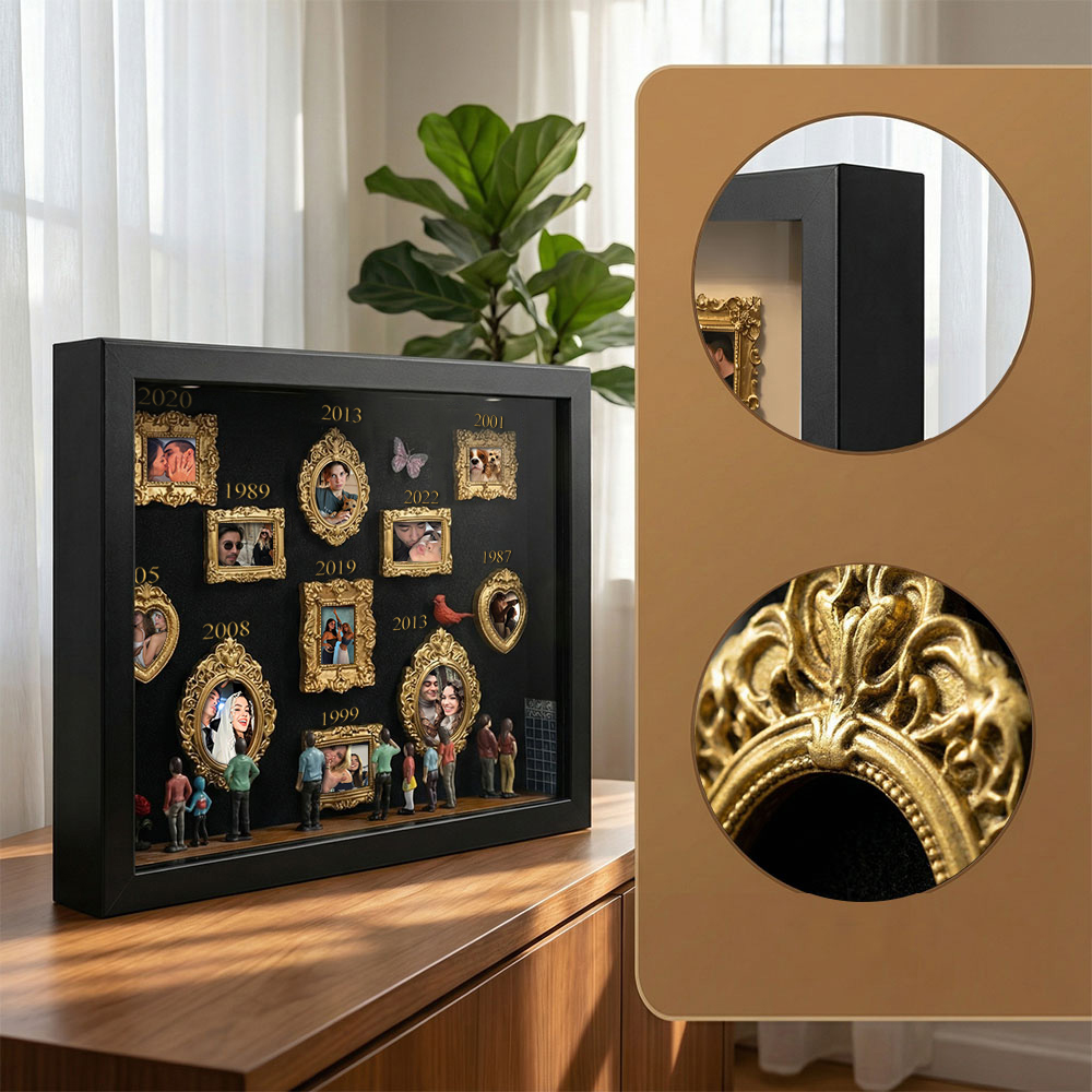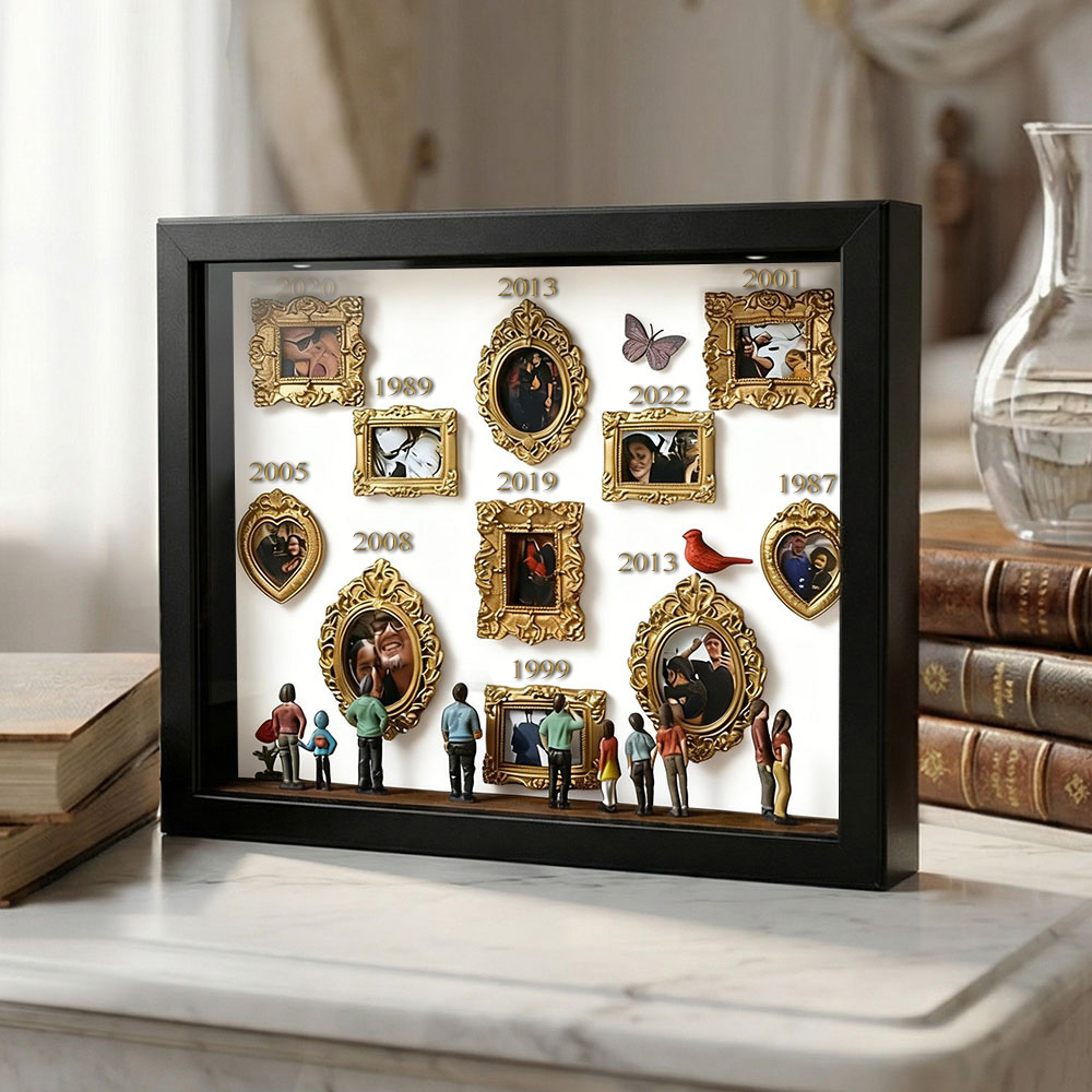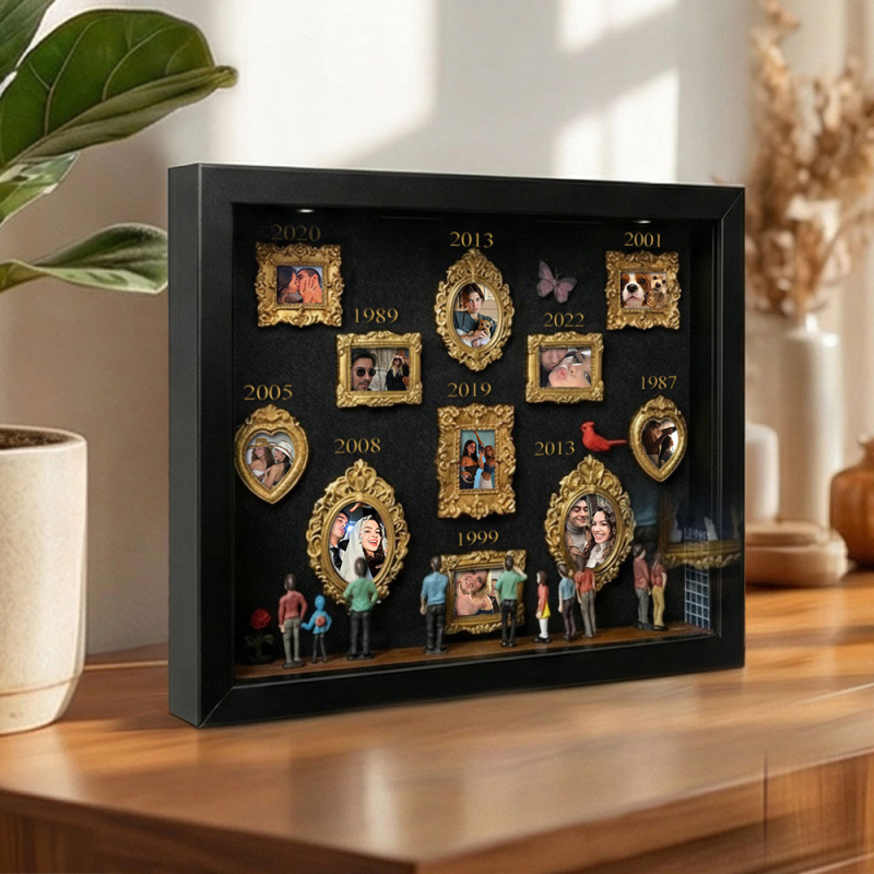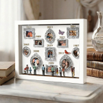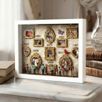 Cada caja de recuerdos está cuidadosamente dispuesta con elementos simbólicos que reflejan la historia familiar y personal. Ya sea para regalar o para exhibir en tu hogar, esta pieza cuenta una historia poderosa: tu historia.
