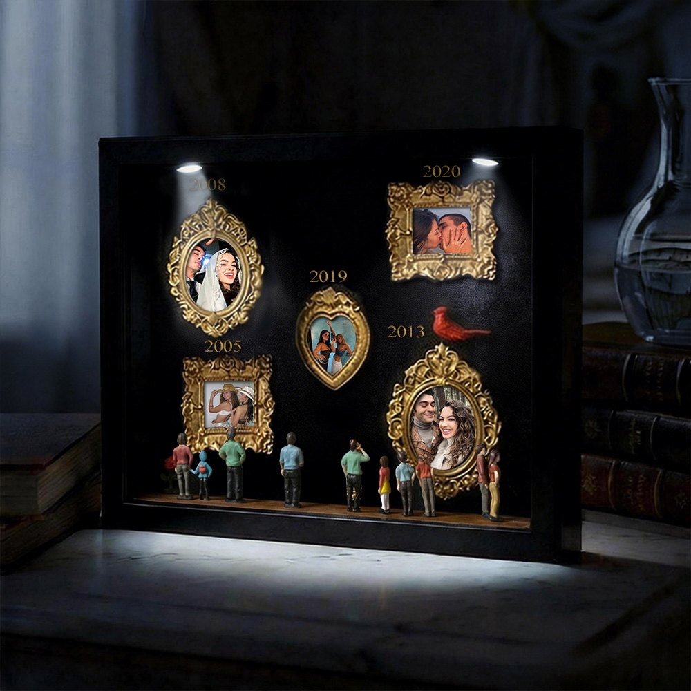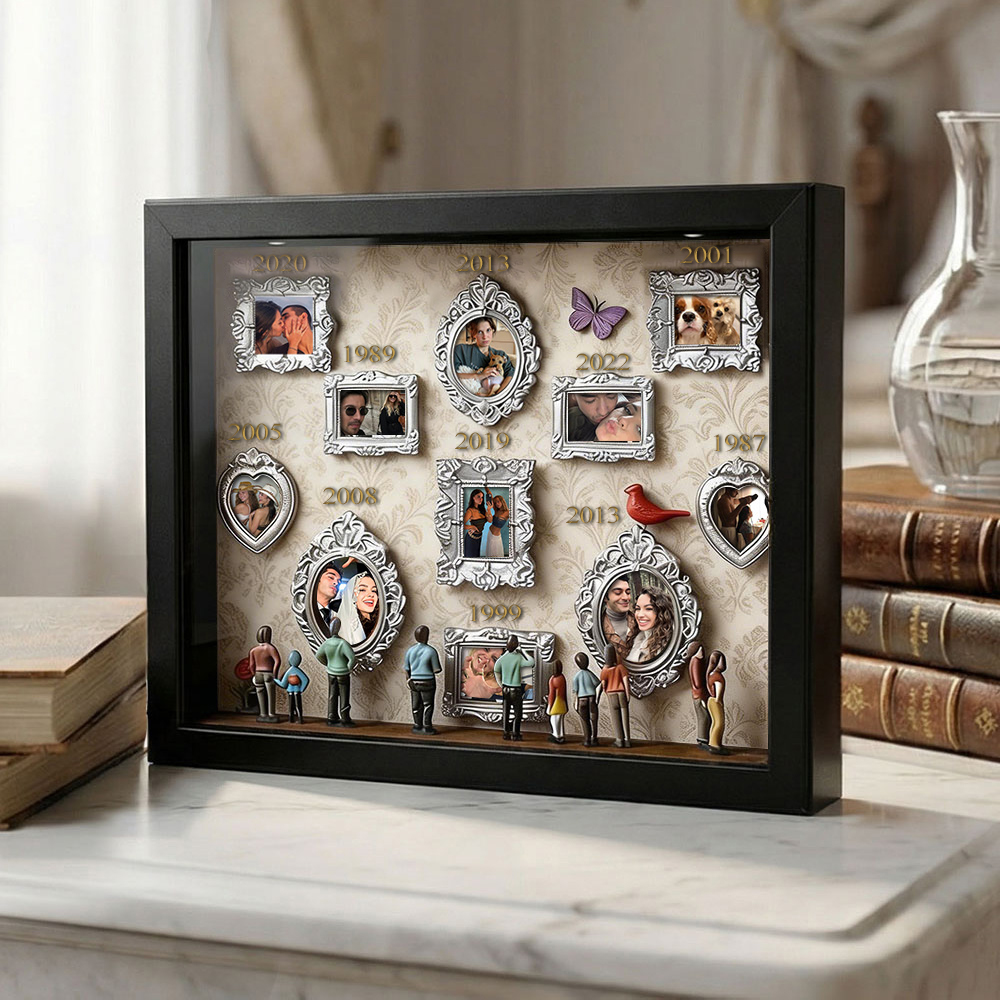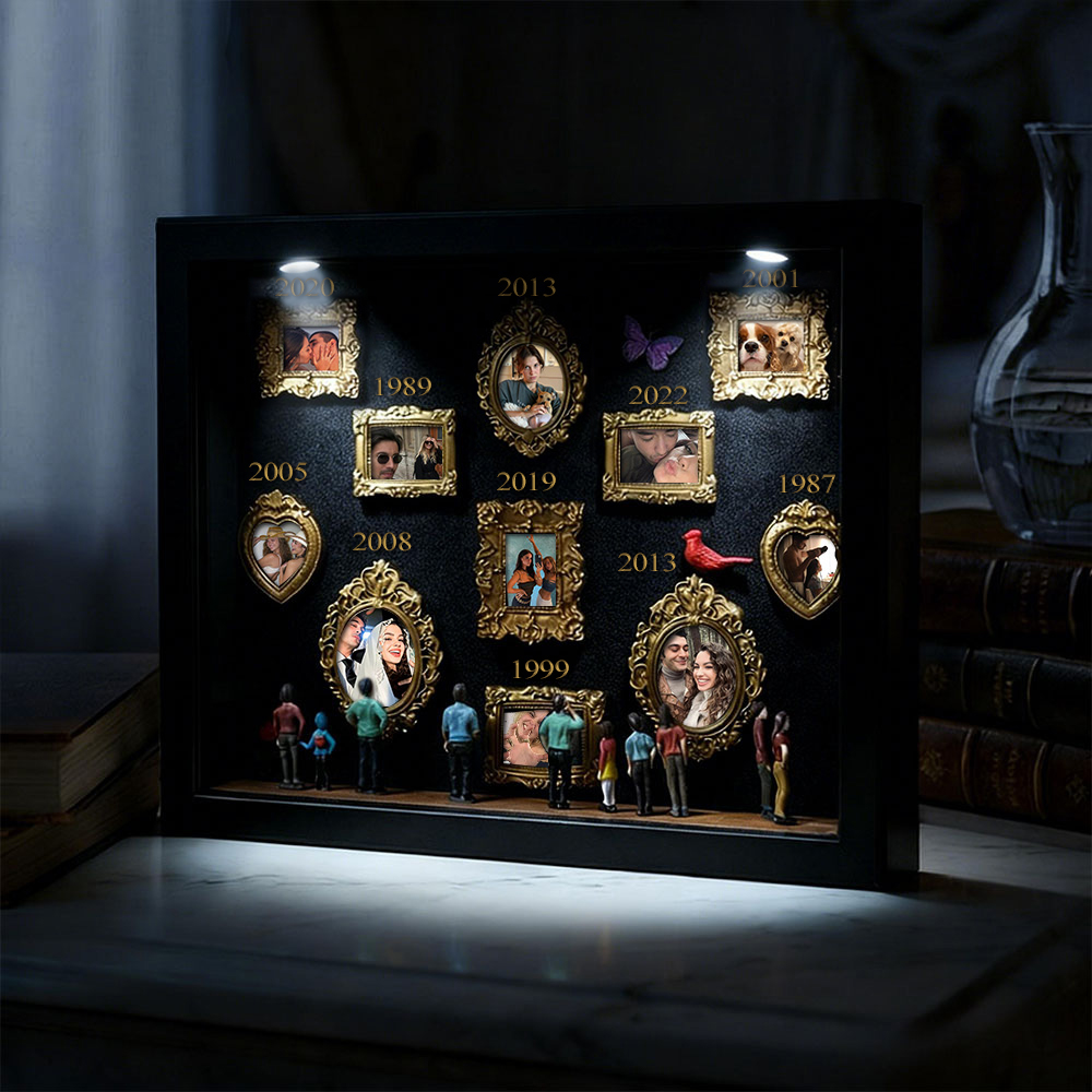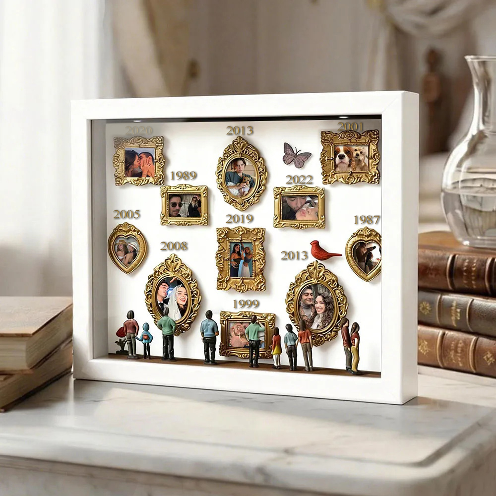 Cada caja de recuerdos está cuidadosamente dispuesta con elementos simbólicos que reflejan la historia familiar y personal. Ya sea para regalar o para exhibir en tu hogar, esta pieza cuenta una historia poderosa: tu historia.