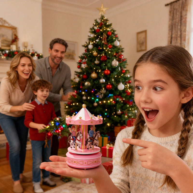 Captura recuerdos inolvidables con nuestro adorno de caja de música con carrusel de retratos personalizado. Esta elegante decoración de escritorio convierte tus retratos familiares en un encantador carrusel giratorio que reproduce una melodía relajante. Perfecto para escritorios, estanterías o mesitas de noche, añade un toque personal a cualquier espacio y es un regalo conmovedor para tus seres queridos.