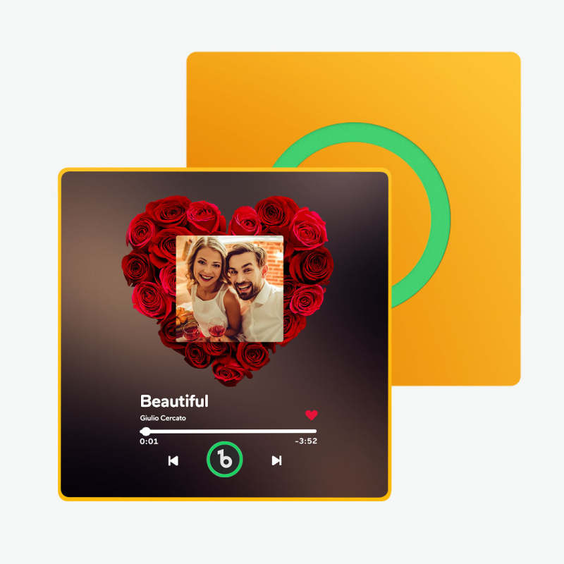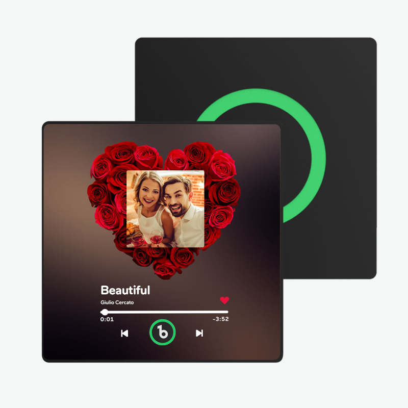 Seguro y ecológico: Fabricado con materiales de alta calidad, seguros y no tóxicos, lo que garantiza un uso prolongado y sin preocupaciones. Su diseño de bajo consumo energético también significa que no tendrá que preocuparse por los frecuentes cambios de batería.Este artículo requiere de 3 a 5 días hábiles para su producción.¿?Exclusividad: Al ser el único imán de nevera musical personalizado del mercado, este regalo es un testimonio único de su amor. Valor emocional: Cada canción personalizada transmite las historias y emociones que comparten, haciendo de este regalo algo cálido y significativo.Gran practicidad: No solo es un regalo de San Valentín, sino también una pequeña bendición en el día a día, que les recuerda constantemente el amor y el cariño que se tienen.
