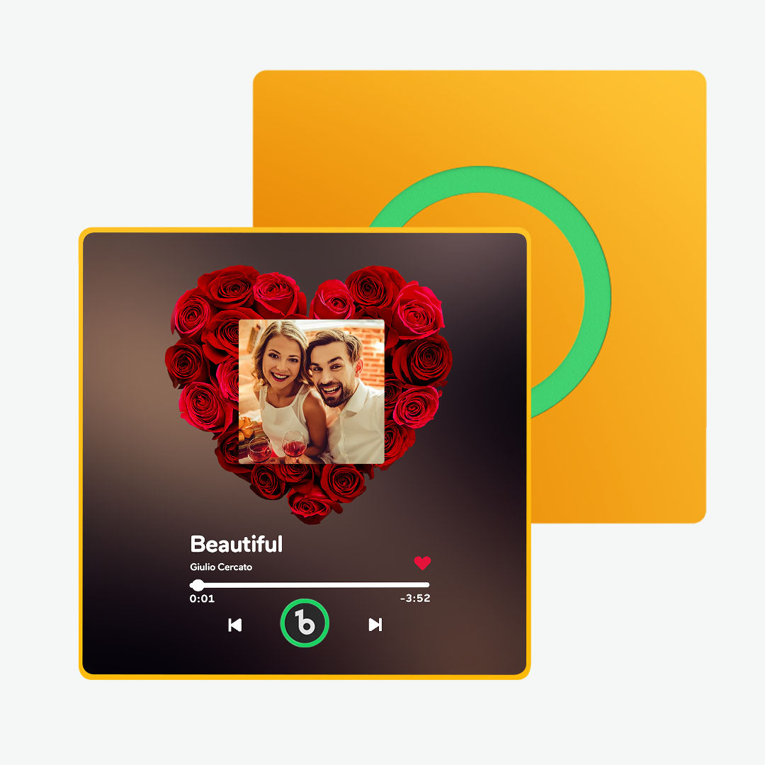 Trae tu música favorita ¡Dale vida a tu música con nuestro imán personalizado para nevera con forma de álbum! Este innovador imán es más que un simple elemento decorativo; es un dispositivo funcional e interactivo que te permite reproducir tus canciones favoritas directamente desde tu nevera. Ya sea que quieras escuchar una lista de reproducción relajante mientras cocinas o disfrutar de tu música favorita mientras tomas un refrigerio, este imán para el refrigerador lo hace posible.Material: AcrílicoTamaño: 10 cm x 10 cm x 1 cmDimensiones: 10 cm x 10 cm x 1 cmTiempo de carga: 30 minutosTiempo de carga: 30 minutosDuración de la batería: 4-6 horasCaracterísticas: Resistente al agua y duradero, sin necesidad de desmontar componentes para cambiar la música. Música personalizada: Elige canciones románticas o tus melodías favoritas para un imán de nevera musical personalizado. Cada vez que el imán se active, estará acompañado por la música de tu amor. Si lo deseas, incluso puedes cambiar la música del imán por cualquier canción que elijas o una grabación de voz personal. Para obtener instrucciones detalladas, ponte en contacto con nuestro servicio de atención al cliente. Tenemos un tutorial dedicado listo para ti.