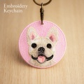 Estos llaveros bordados con forma de perro presentan diseños muy detallados y realistas de diversas razas, como Corgi, Caniche, Golden Retriever, Husky y más. Cada llavero está hecho con intrincados bordados sobre un parche circular de tela, con colores vivos y texturas realistas que resaltan la personalidad única de cada perro.