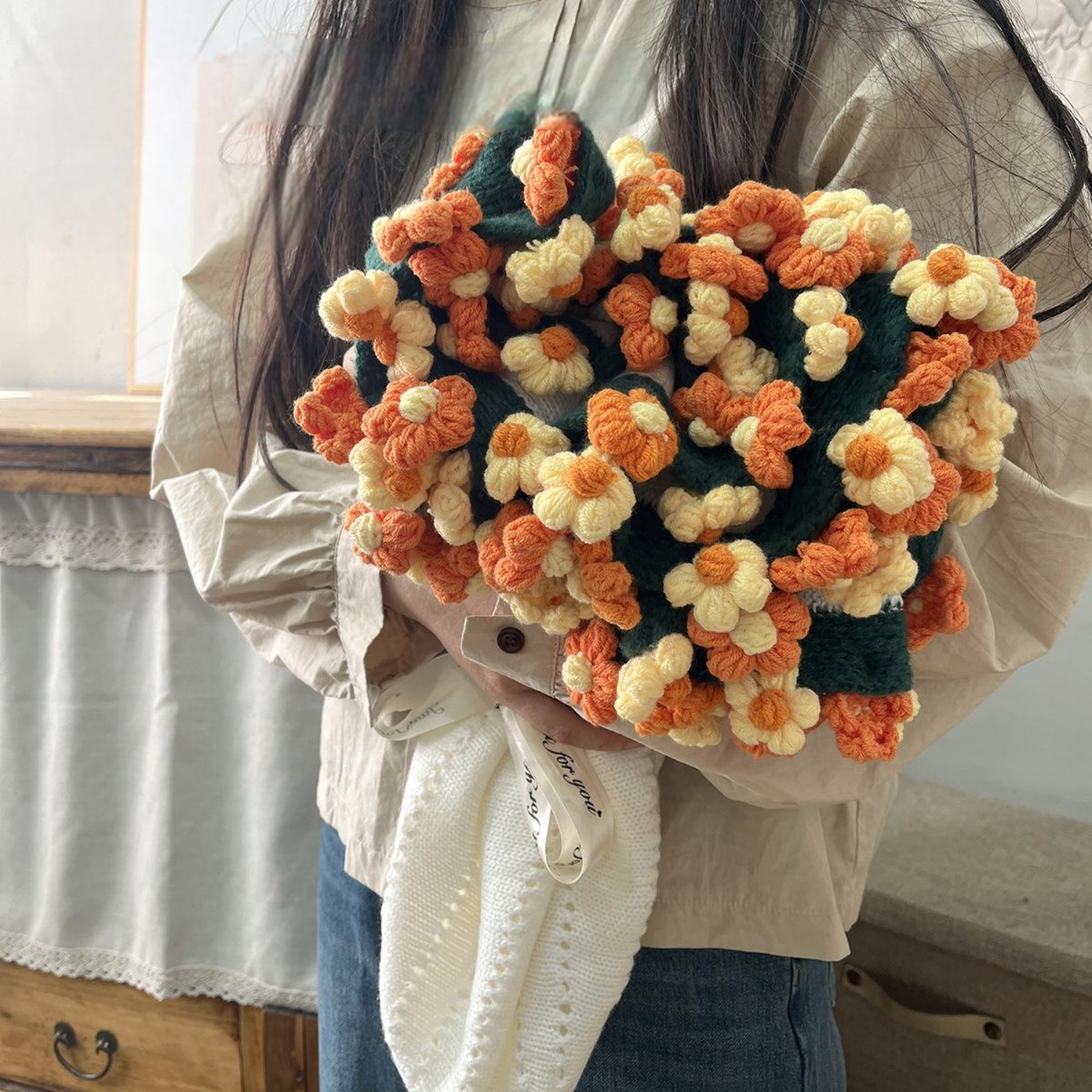 Presentamos nuestro Ramo de Mantas de Margaritas Tejidas a Mano: una manta de flores tejida a mano, bellamente elaborada y lista para usar, que celebra la calidez del amor y la amistad. Perfecta como un regalo especial para madres y amigas, esta encantadora manta presenta un delicado diseño de margaritas que añade un toque de elegancia floral a cualquier habitación. Hecha con esmero y materiales de alta calidad, ofrece comodidad y estilo, convirtiéndola en la compañera ideal para veladas acogedoras o en una hermosa pieza decorativa. Envuelve a tus seres queridos en un abrazo de suavidad y belleza con esta manta única.
