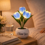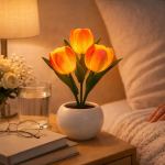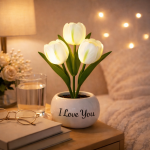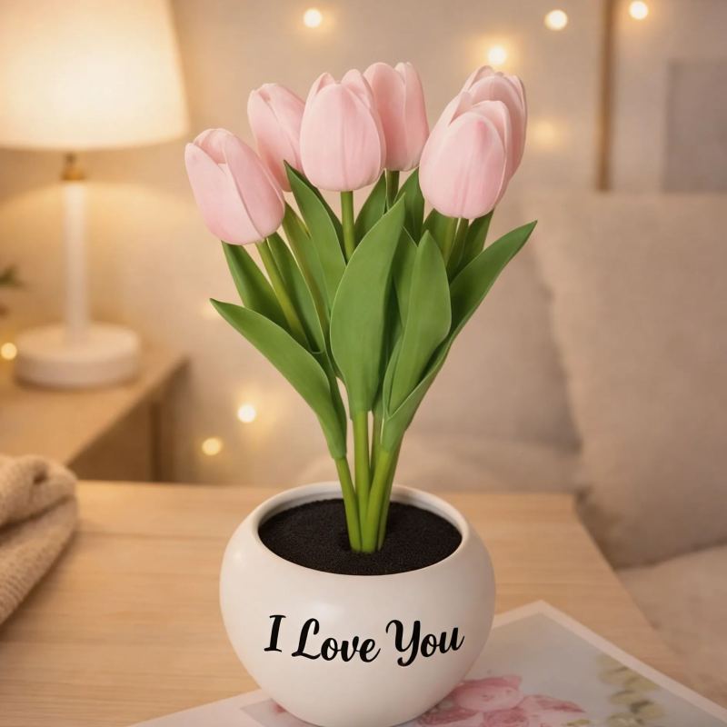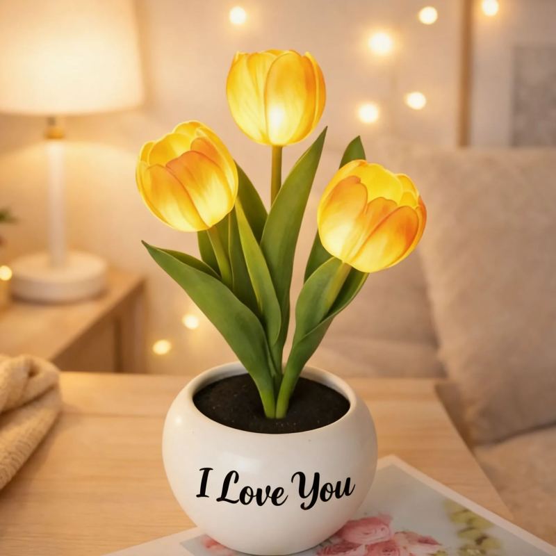 ✨ Elegante brillo románticoEsta luz nocturna LED con forma de tulipán crea una atmósfera suave y cálida, perfecta para dormitorios, mesitas de noche, salas de estar o rincones acogedores.