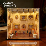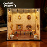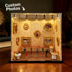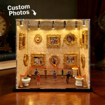 Fabricado en acrílico transparente, este mini museo crea un efecto visual flotante que resalta cada momento sin distracciones. Ya sea una historia de amor, un recuerdo familiar o un hito significativo, cada foto forma parte de una exposición atemporal.