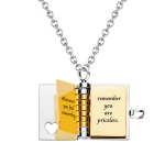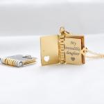Este encantador colgante se despliega como un pequeño libro de cuentos, que contiene seis preciosas páginas de amor y aliento: un recuerdo perfecto para recordarle a tu hija que ella significa el mundo para ti.