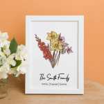 ¡Regálale a mamá un obsequio único y especial con nuestro marco de ramo personalizado! Cada ramo está impreso con las flores de nacimiento correspondientes a cada nombre, lo que lo convierte en un regalo verdaderamente único. Demuéstrale cuánto la quieres con este regalo personalizable y lleno de cariño.