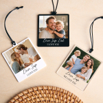 Mantén a tus seres queridos seguros y cerca en cada viaje con este Adorno Personalizado para Auto, un regalo conmovedor que combina un gran valor sentimental con un significativo recordatorio de "Conduce con Cuidado".