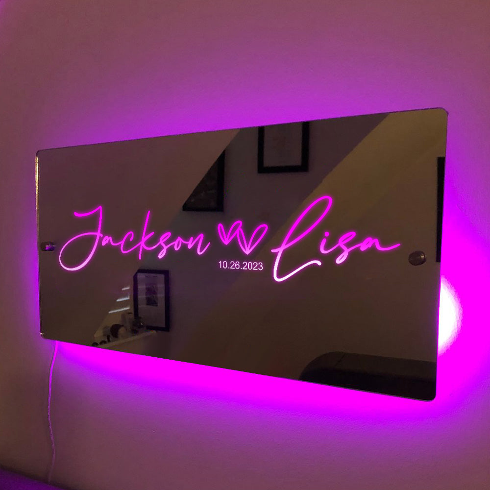 Marquesina De Espejo Con Luz Y Nombre De Pareja Personalizado, Regalo De Navidad