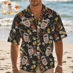Camisa Hawaiana Con Cara Personalizada, Camisa Hawaiana Con Calavera De Whisky, Regalo Creativo Para El Día Del Padre