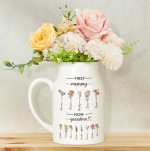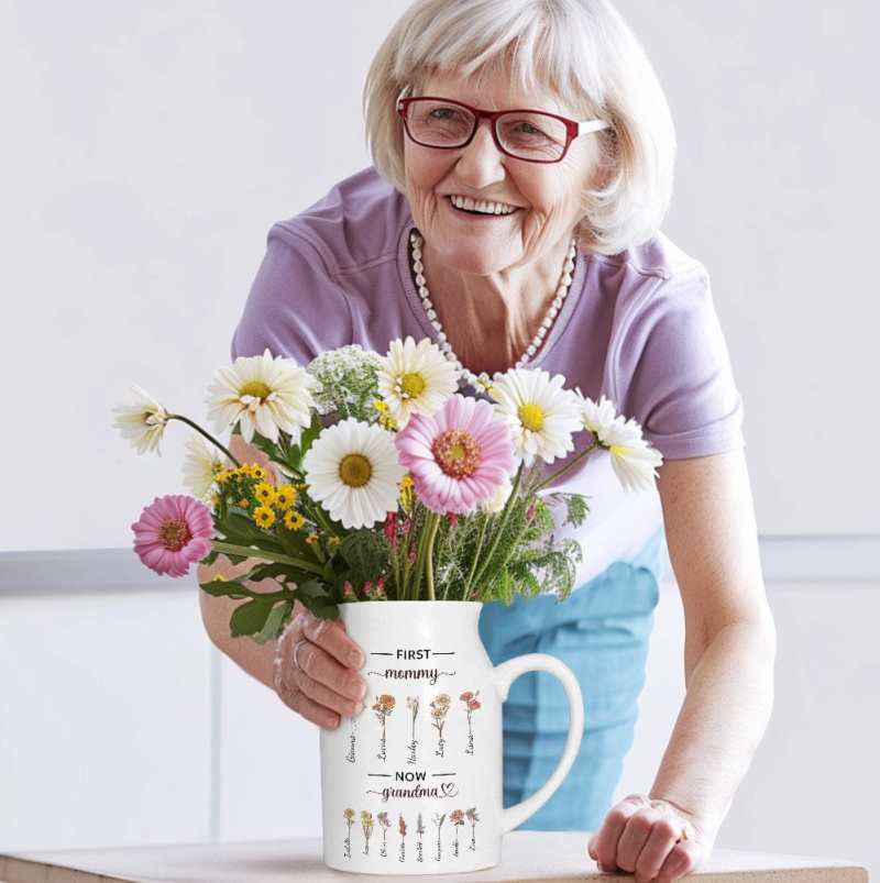 Personalización: Personaliza la imagen de la flor con el número de personas y nombres. Elige tus opciones para ver la vista previa El jarrón de flores está hecho a mano con cerámica de grado A de alta calidad, con un acabado brillante para un tacto suave. La superficie esmaltada con líneas claras y la base con un diseño grueso y antideslizante, no se corroe fácilmente y no se rompe fácilmente. Material: Cerámica Tamaño: 2,75 x 4,33 pulgadas (310 ml) 3,15 x 4,72 pulgadas (450 ml) El jarrón de flores es perfecto para una variedad de propósitos decorativos. Combínalo con flores secas, hierba de la pampa natural, caña, colas de conejo o flores frescas, plantas verdes y suculentas. También es un regalo perfecto para ocasiones especiales. Sorprende a tus seres queridos en el Día de la Madre, Acción de Gracias, aniversarios, bodas o inauguraciones de casas. Su belleza atemporal y versatilidad lo convierten en un regalo entrañable que será apreciado durante muchos años.