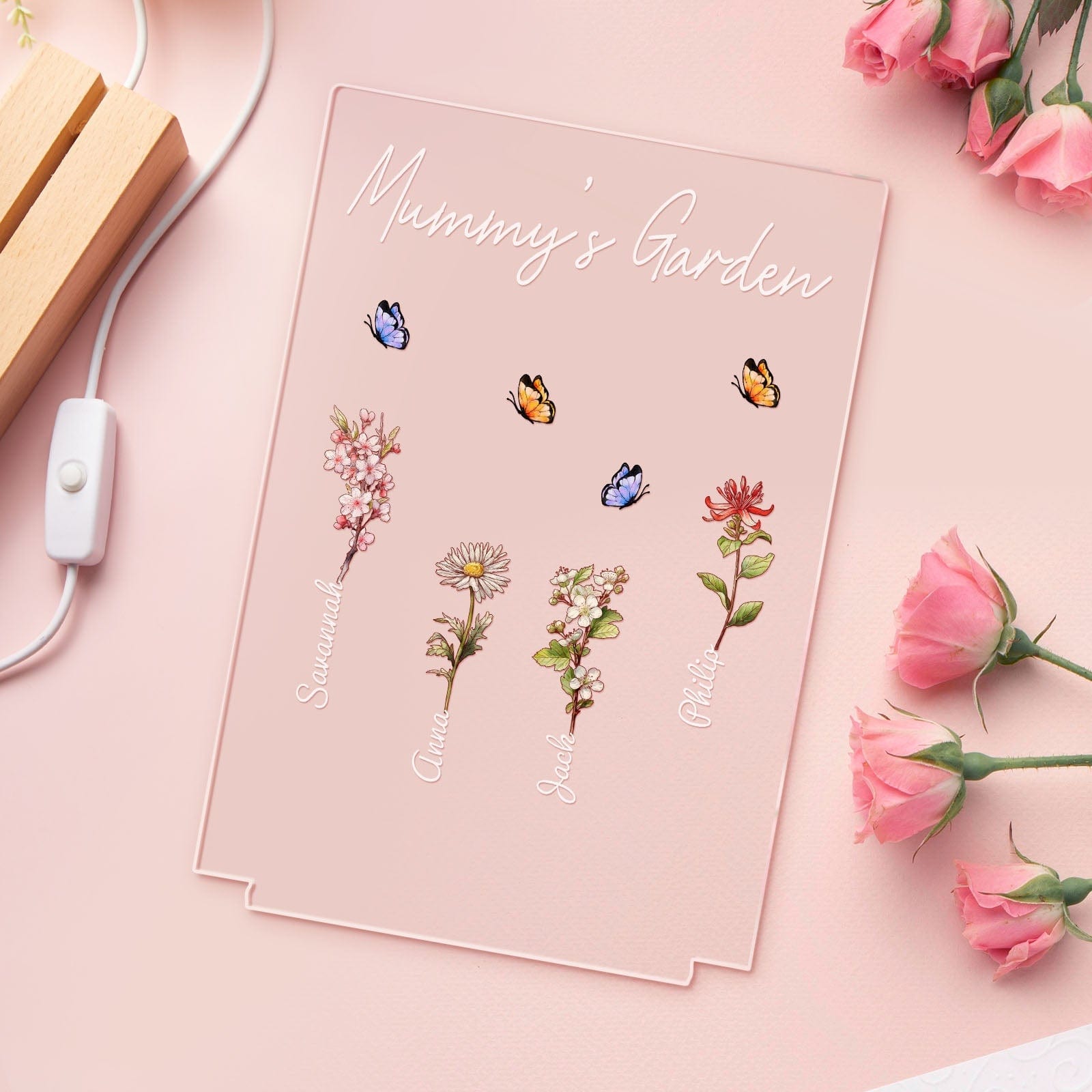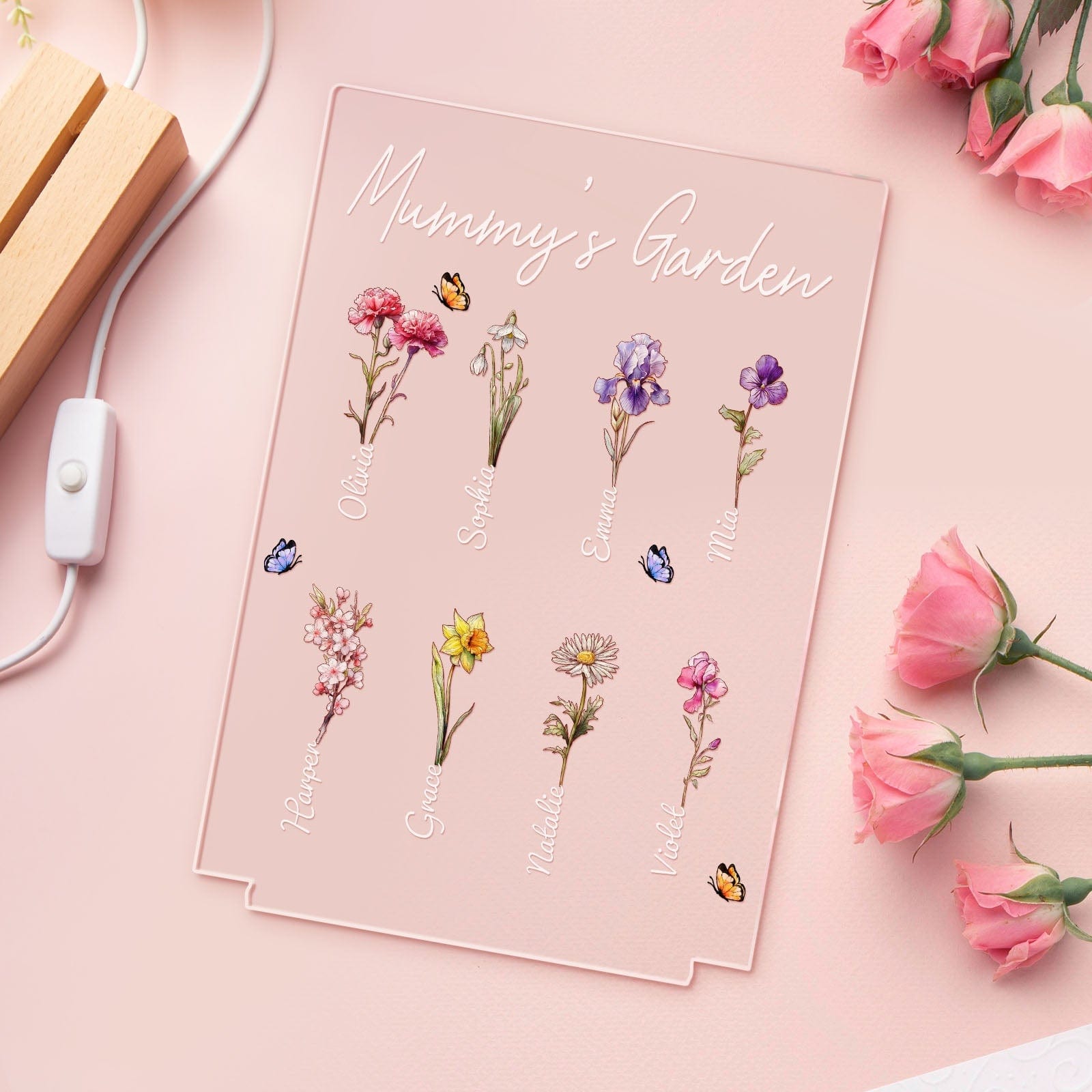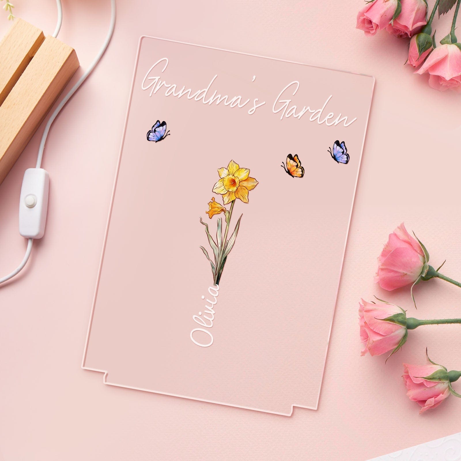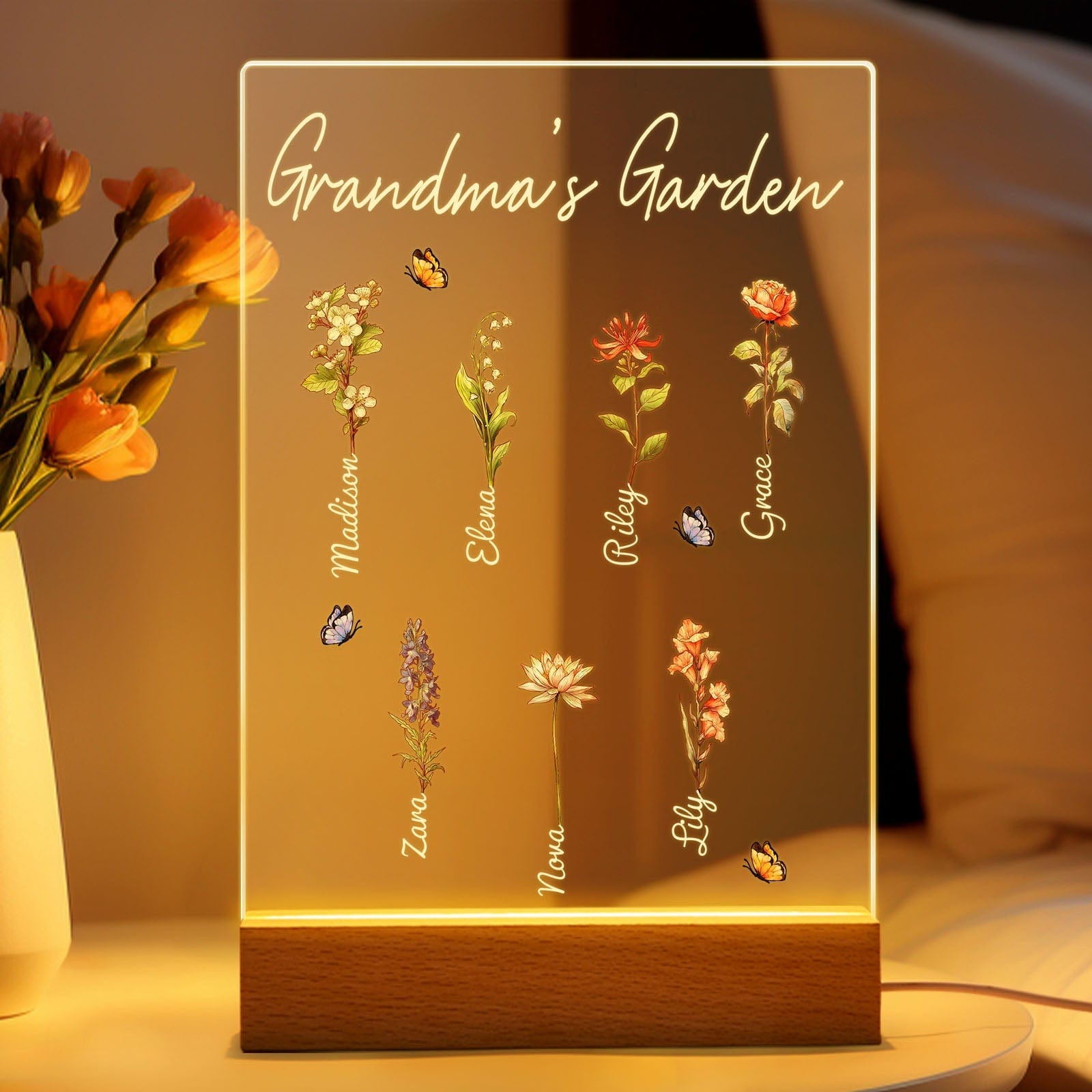 Lámpara De Noche Personalizada Para El Jardín De La Abuela, Regalo Floral Del Mes De Su Nacimiento Para Ella.