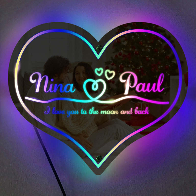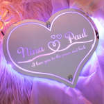 Marquesina Con Espejo Y Luz De Corazón Personalizada Para Regalos De Boda