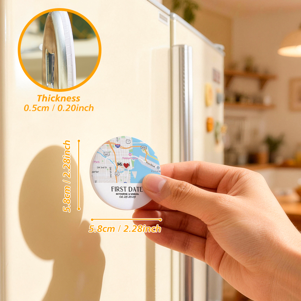 Recuerda para siempre tu primera cita con este imán de nevera personalizado con el mapa de nuestra primera cita. Ya sea el lugar donde se conocieron, el sitio de su boda o su ciudad favorita, este recuerdo personalizado combina practicidad y emotividad.