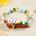¿Aún te cuesta encontrar un regalo único para tu mascota? Echa un vistazo a nuestro collar personalizado. ¡Nuestro diseño único seguro que satisfará tus necesidades!Puedes elegir el color del nombre y te ofrecemos cuentas de silicona y de madera para personalizarlo.El botón tiene una hebilla que se abre fácilmente para que tu mascota lleve el collar exclusivo y luzca más encantadora que otras.Tamaño de la hebilla ajustable: de 12,7 a 18,8 cm.Color de la hebilla: Verde, morado, champán, azul, marrón.
