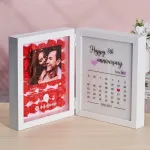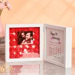 Cada caja de sombras presenta un exquisito ramo de flores de papel hechas a mano, arregladas con delicados detalles. Debajo, un sutil calendario de aniversario marca su camino juntos. Selecciona una canción significativa y la integraremos con un reproductor de música de un solo toque: deja que la melodía dé vida a tus recuerdos con solo presionar un botón.