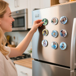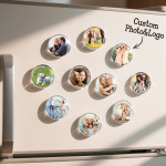Transforma tus recuerdos más preciados en una hermosa decoración para el hogar con nuestros imanes fotográficos de vidrio personalizados. Cada juego incluye 3, 5 o 10 imanes redondos de alta calidad, personalizados con las fotos que elijas. Fabricados con un fuerte respaldo magnético, estos imanes para refrigerador combinan valor sentimental con funcionalidad para el día a día. Perfectos para exhibir momentos familiares, fotos de mascotas, fotos de bodas o recuerdos de viajes directamente en tu refrigerador, casillero o cualquier otra superficie magnética. Un regalo considerado y sincero para un cumpleaños, el Día de la Madre o una inauguración de casa.