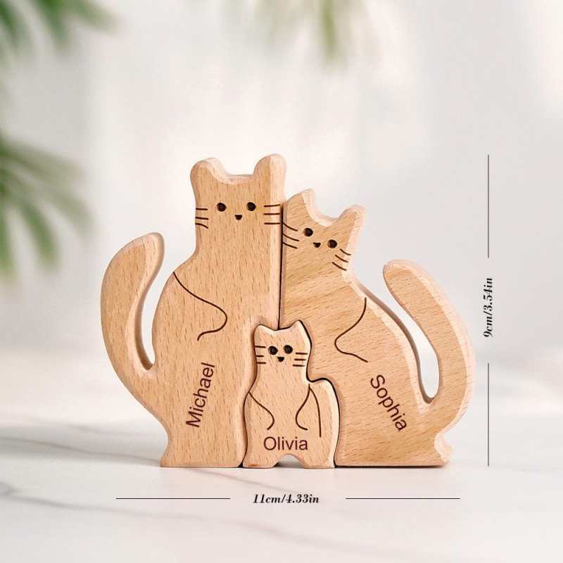 Rompecabezas De Madera Con Nombres Personalizados De La Familia De Gatos, Decoración Para El Hogar, Regalos