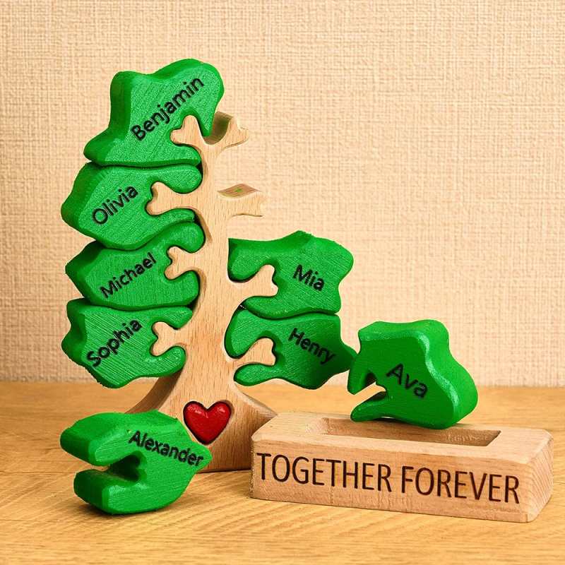 Cada pieza del rompecabezas de árbol se puede grabar con el nombre de un miembro de la familia. Cada pieza de forma única de estos osos rompecabezas de madera personalizados da vida a un miembro especial de la familia y su amor, lo que los convierte en el regalo sorpresa perfecto para cualquier celebración.