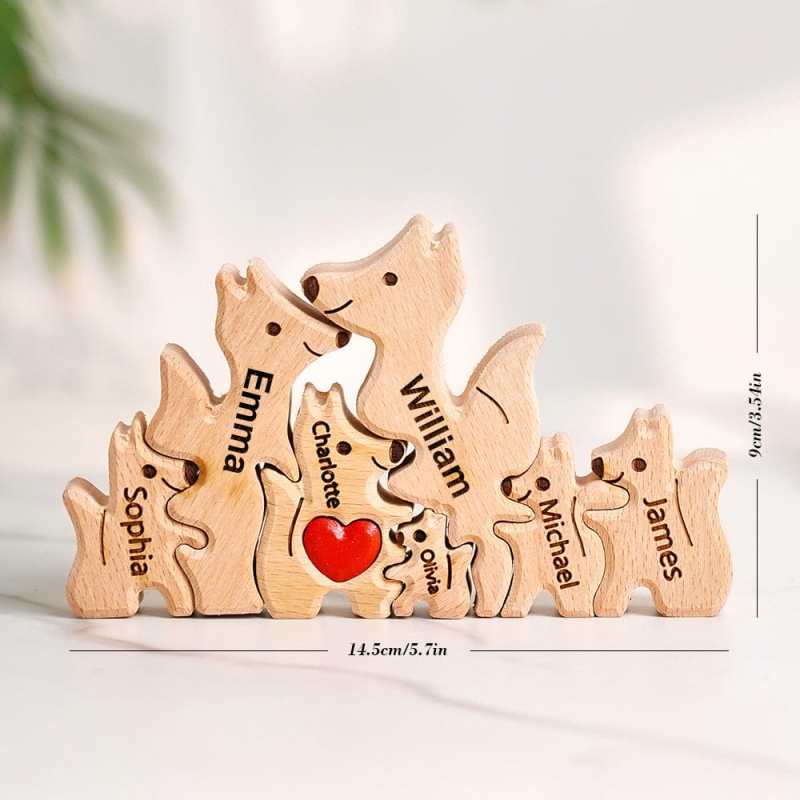 Rompecabezas De Madera De La Familia Fox Con Nombres Personalizados. Regalos Para Inauguración De Casa.