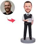 La cabeza fija se puede moldear para cualquier peinado, mientras que los peinados más largos pueden afectar el efecto de vibración del muñeco cabezón. Cada uno de nuestros cabezones personalizados está meticulosamente elaborado a mano y se puede producir en un plazo de 4 a 9 días hábiles, según el nivel VIP seleccionado, lo que garantiza un producto de la más alta calidad. El color del producto final puede ser ligeramente más oscuro que el que se muestra en la imagen debido a las características únicas de la arcilla polimérica y su proceso de horneado. Si bien nos esforzamos por que la tez sea lo más fiel posible, tenga en cuenta que puede no coincidir exactamente con la persona representada. Nuestro cabezón personalizado 'El mejor jefe del mundo con un vaso de agua' viene con una garantía de 365 días, lo que le brinda tranquilidad al comprar. Hecho de arcilla polimérica de alta calidad, este cabezón personalizado está diseñado para durar y es una excelente adición a cualquier colección.
